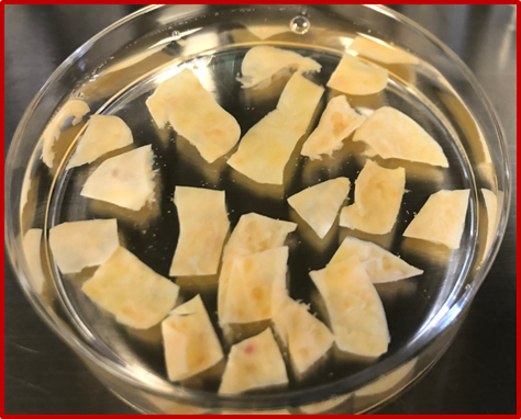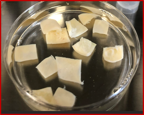 Below two photos to show how the pieces of cortical pieces selected for transplantation look like. As it appears the form is usually not a square and the planar dimensions of a cortical pieces is only an estimate.